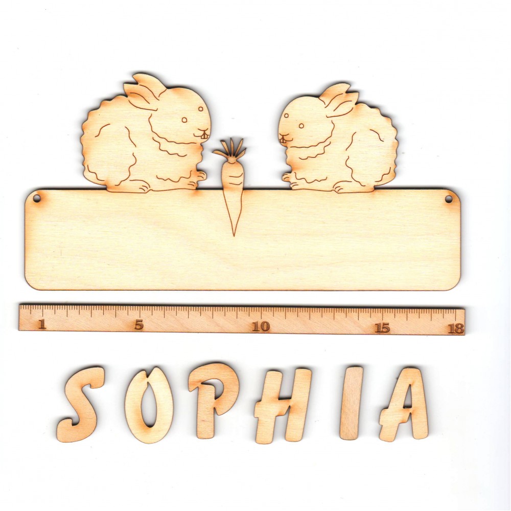 2 Hoppelhasen mit Karotte als Türschild incl. Buchstaben