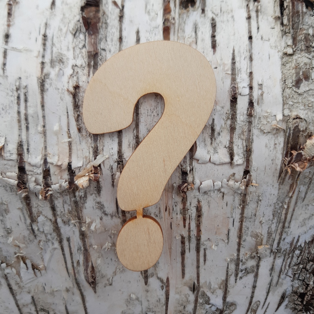 Holz - Fragezeichen aus 3 mm Birkensperrholz, Höhe 8 cm.