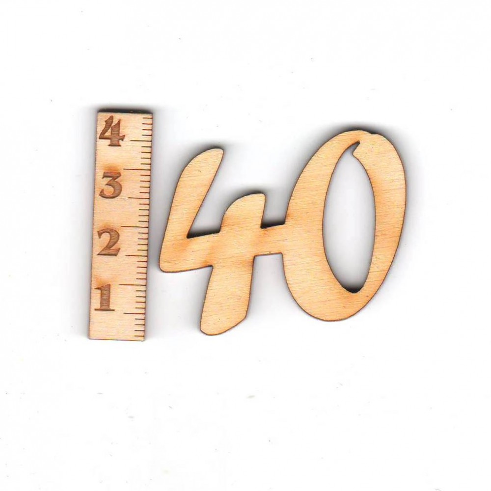 Geburtstagszahl "40" ist aus 3 mm starkem Birkenholz mit einer Höhe von 33 mm und einer Breite von 45 mm.