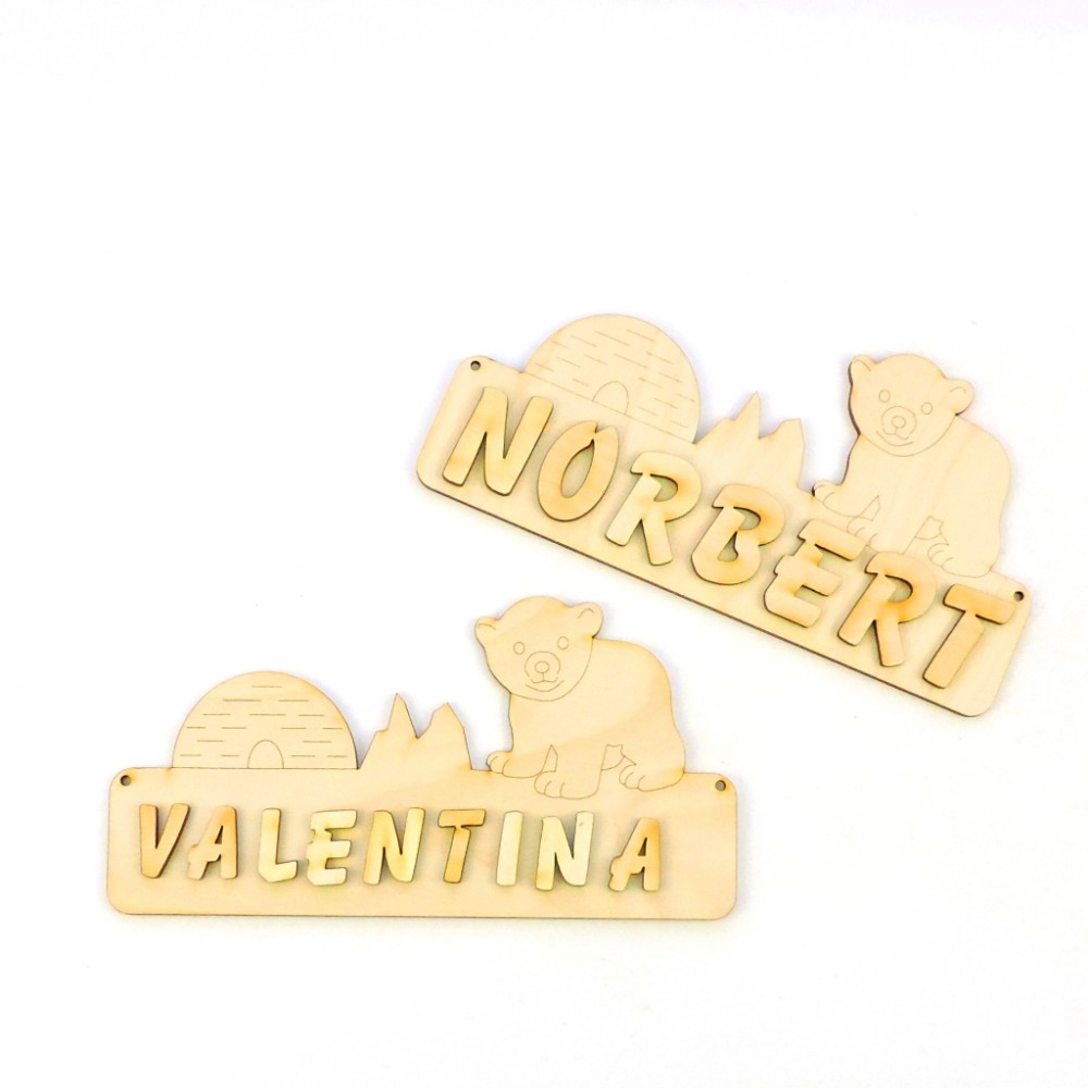 Türschild 18 cm, Eisbär mit Iglu und Berg incl. Buchstaben