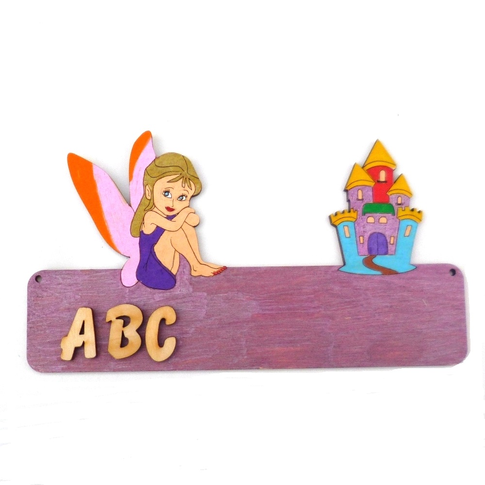 Türschild Motiv Fee mit Schloß Kinderzimmertür incl. Buchstaben