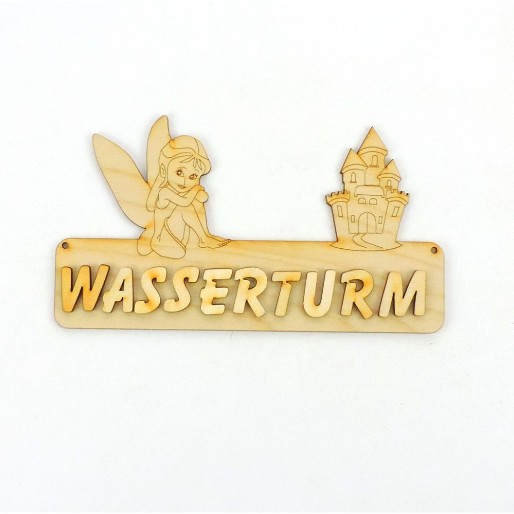 Türschild 18cm, Motiv Fee mit Schloß aus 3mm Sperrholz, Länge 180 mm, Höhe 91 mm.