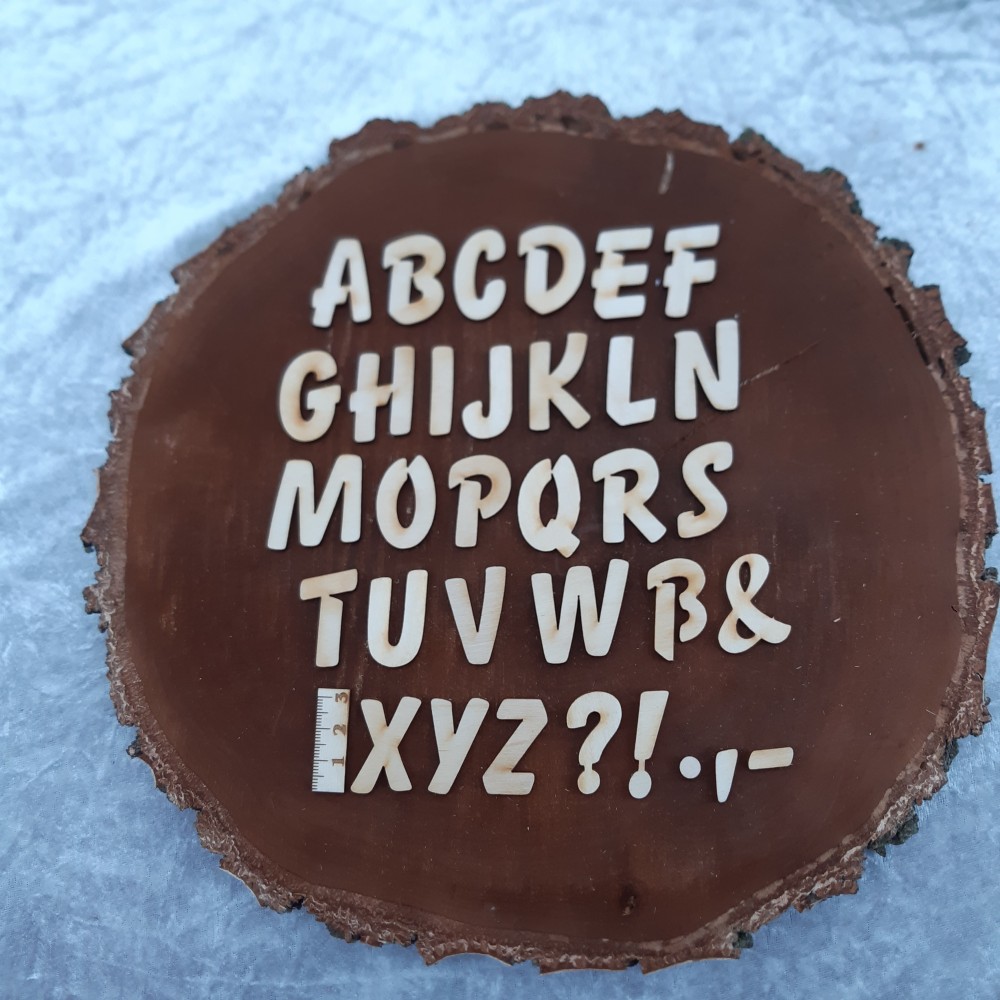 Wir fertigen für Sie aus 3 mm Naturholz das komplette ABC, alle Zeichen und Zahlen in verschiedenen Schriftarten.